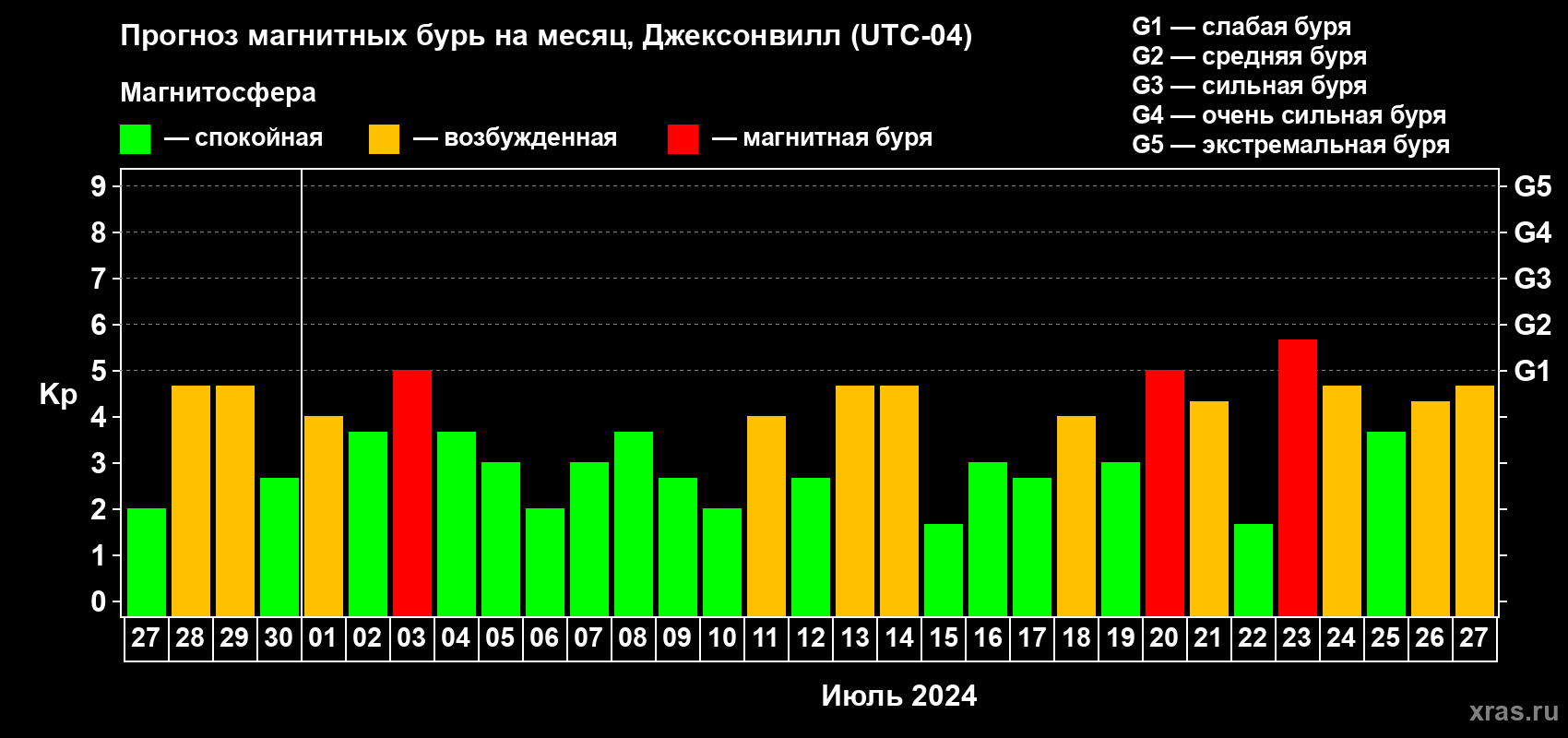 Прогноз магнитных бурь в Джексонвилле — 27 июня 2024 года