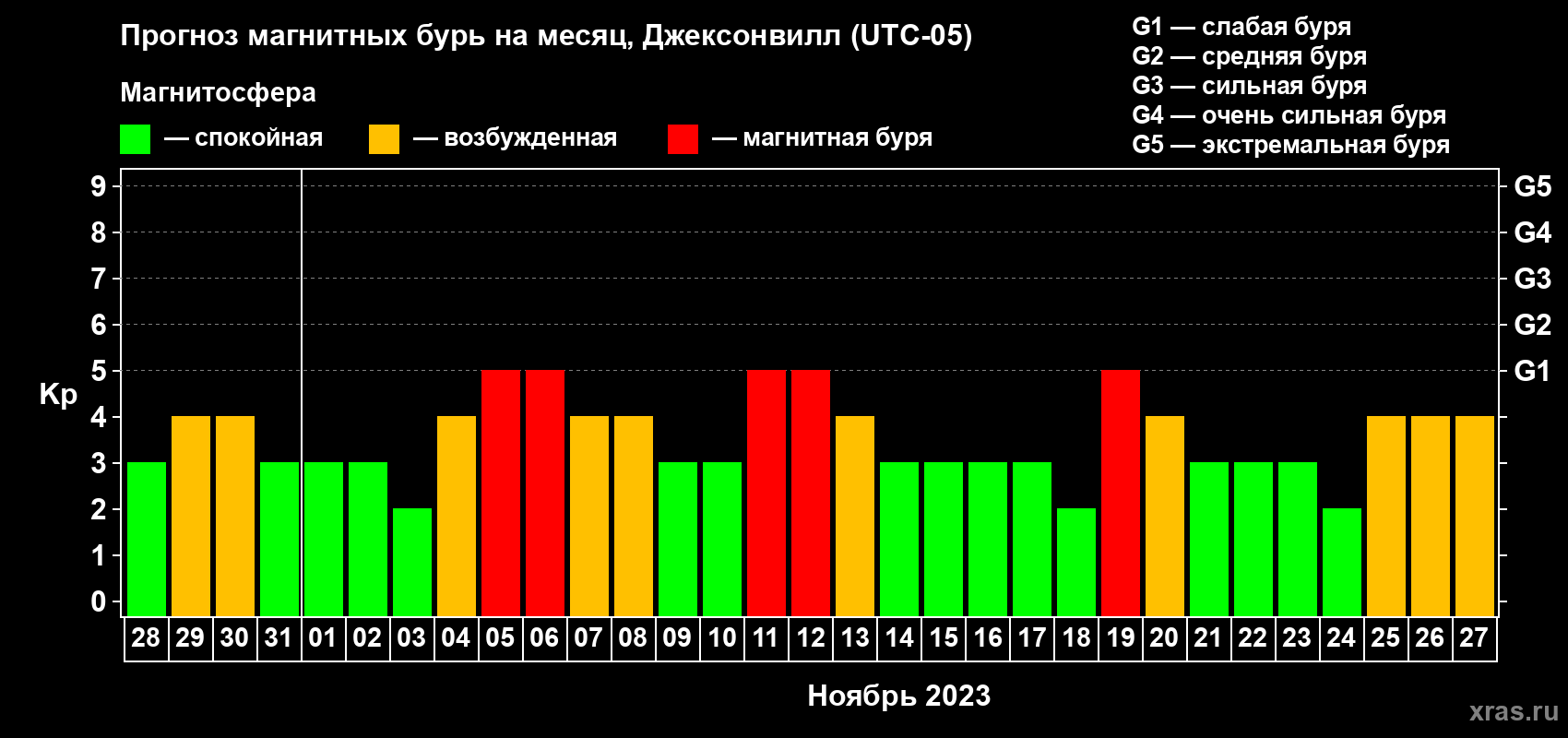 Прогноз магнитных бурь в Джексонвилле — 28 октября 2023 года