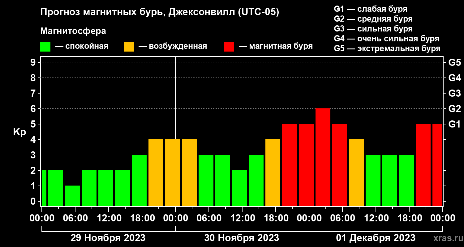 Прогноз магнитных бурь в Джексонвилле на 29 ноября 2023 года