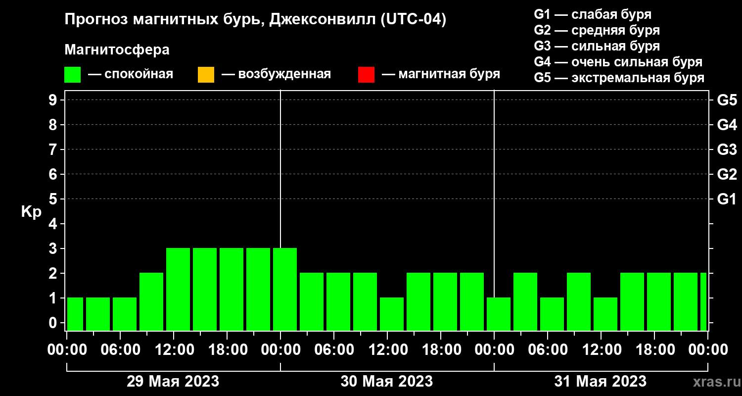 Прогноз магнитных бурь в Джексонвилле — 29 мая 2023 года