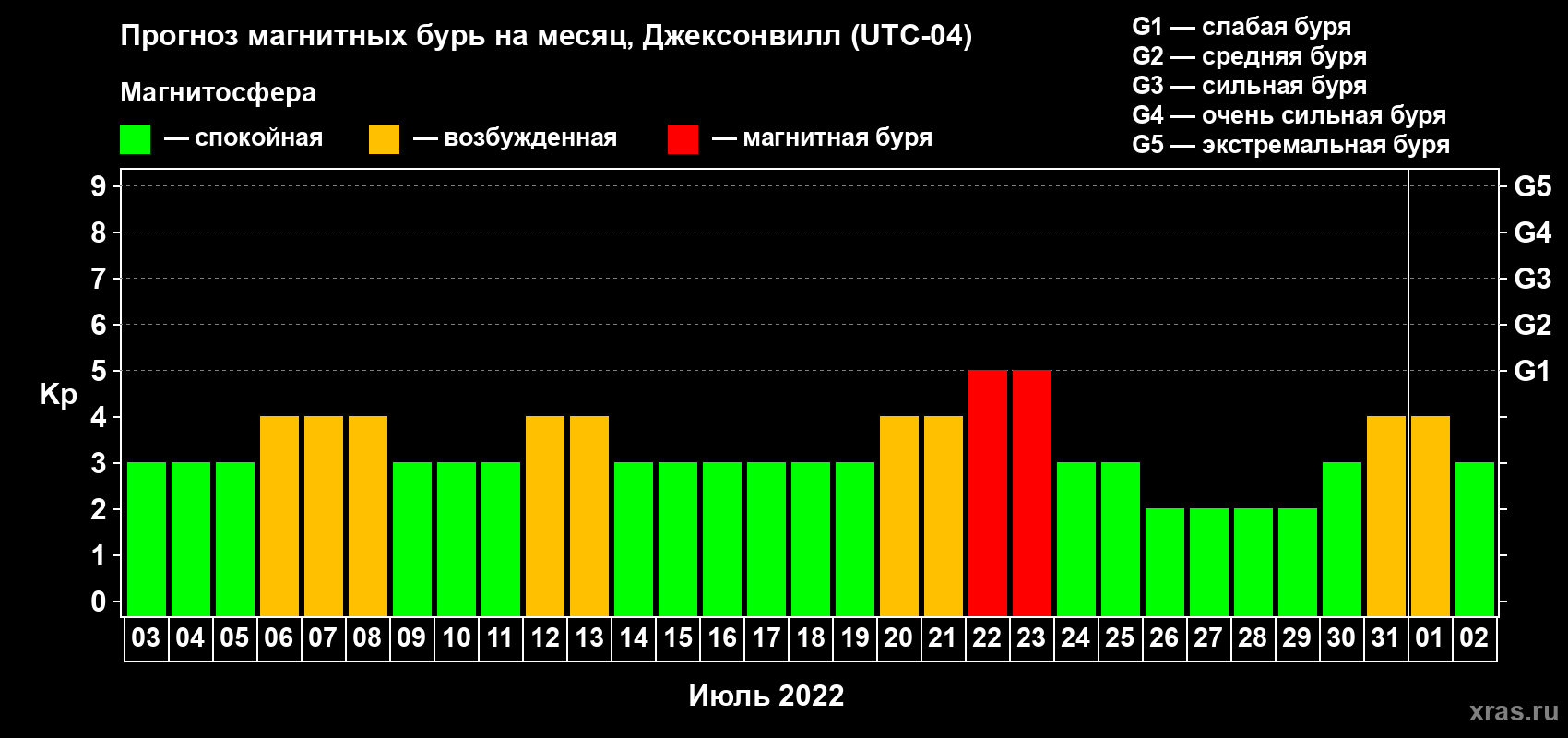 Прогноз магнитных бурь в Джексонвилле — 3 июля 2022 года