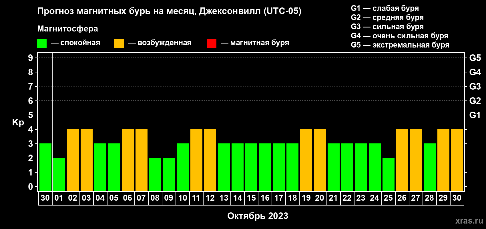 Прогноз магнитных бурь в Джексонвилле — 30 сентября 2023 года