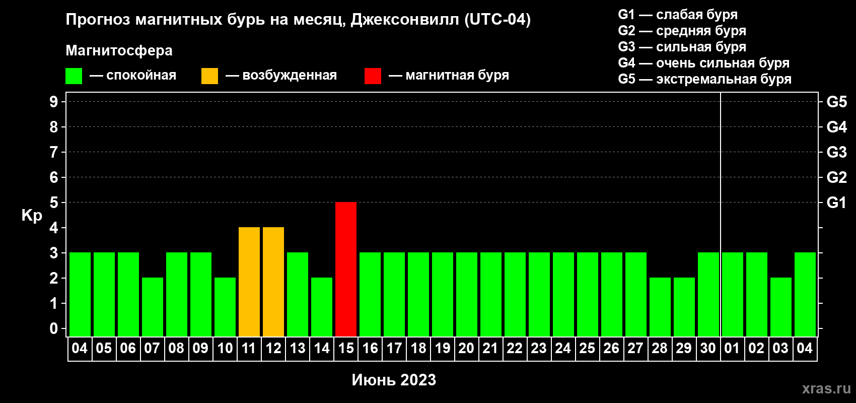 Прогноз магнитных бурь в Джексонвилле — 4 июня 2023 года