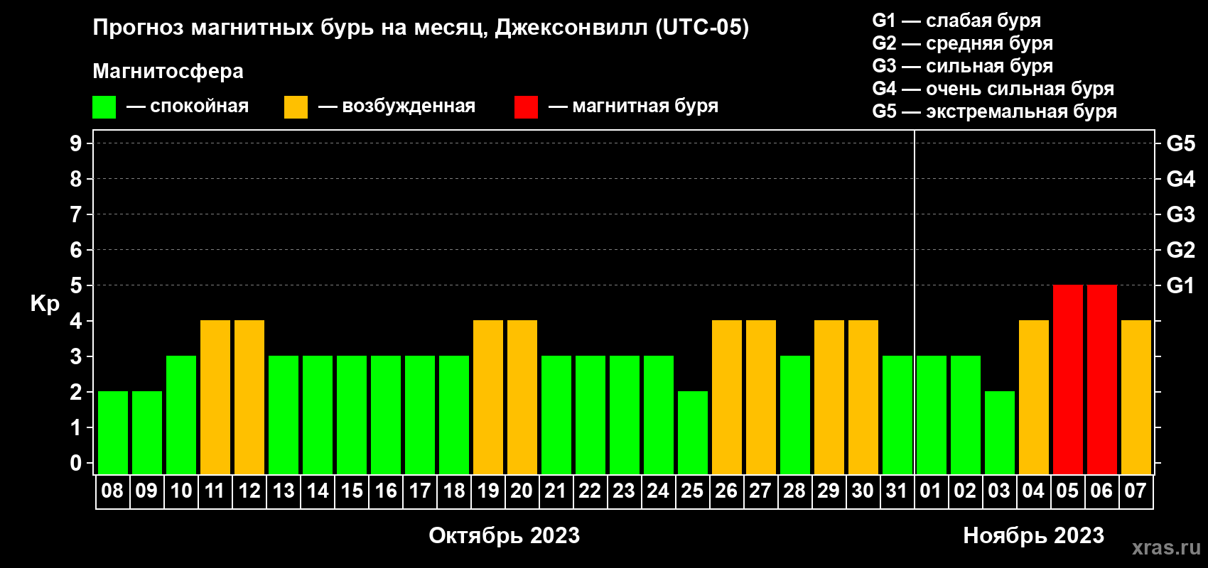 Прогноз магнитных бурь в Джексонвилле — 8 октября 2023 года