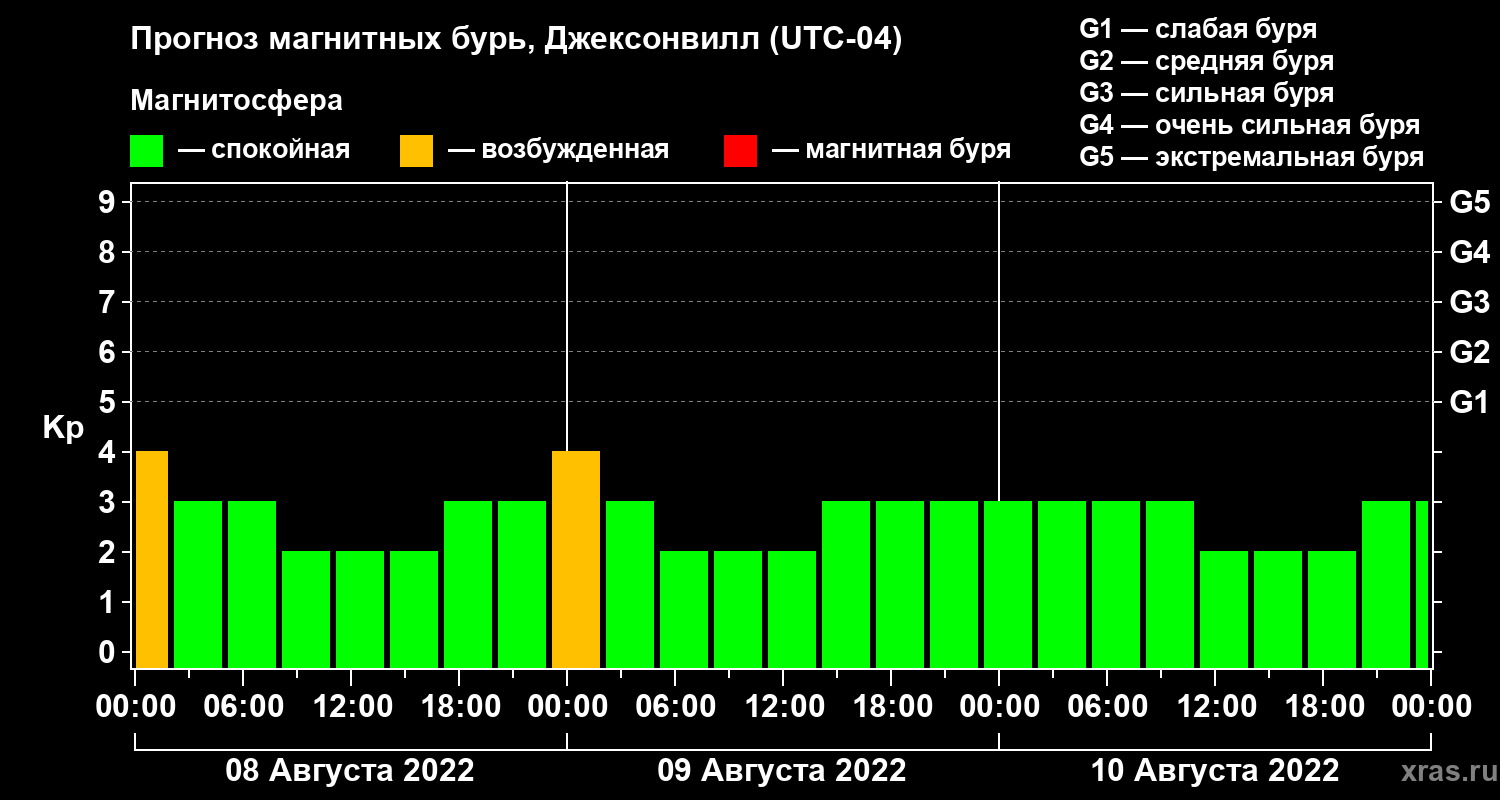 Прогноз магнитных бурь в Джексонвилле на 8 августа 2022 года