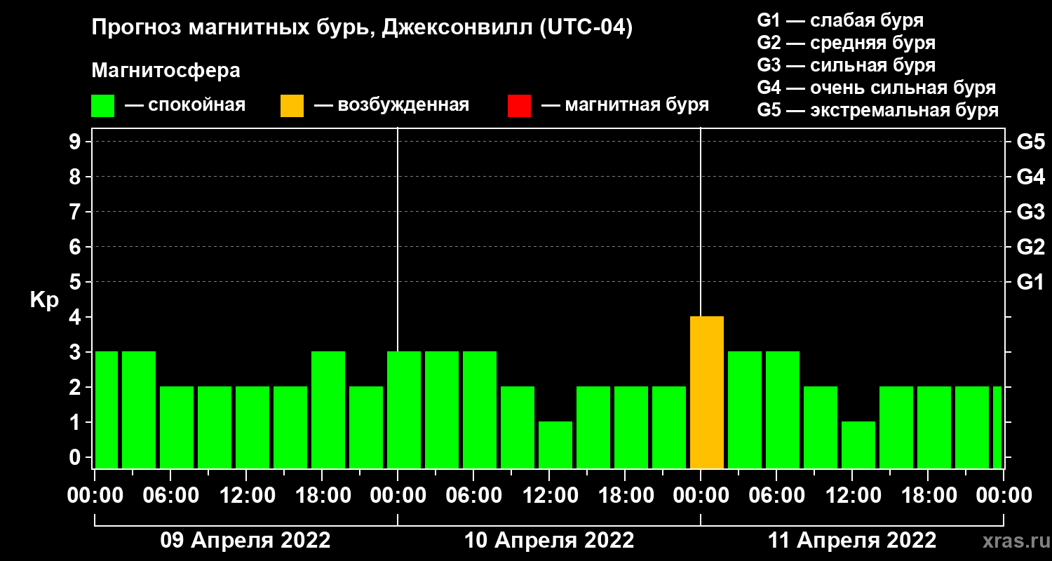 Прогноз магнитных бурь в Джексонвилле на 9 апреля 2022 года