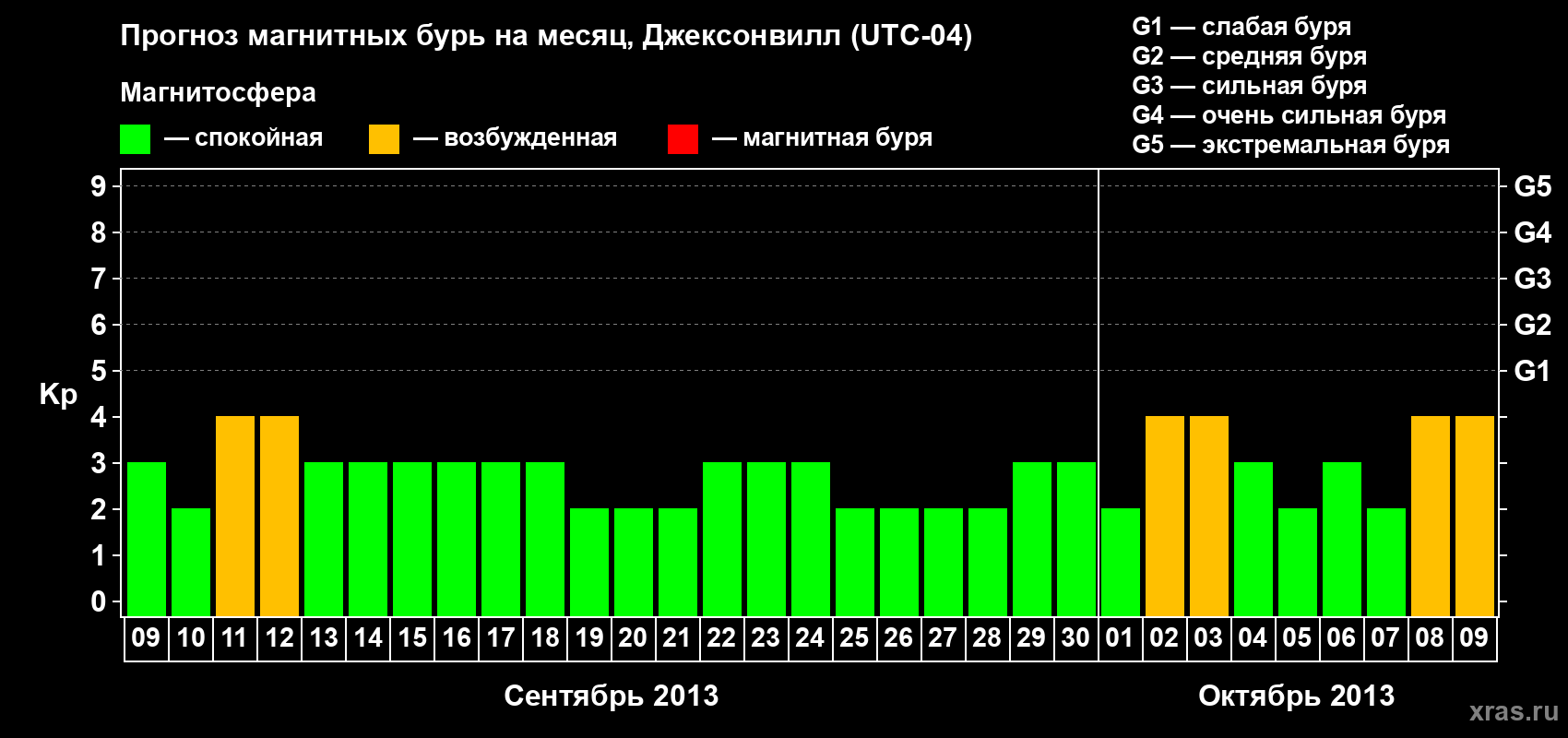 Прогноз магнитных бурь в Джексонвилле на 9 сентября 2013 года