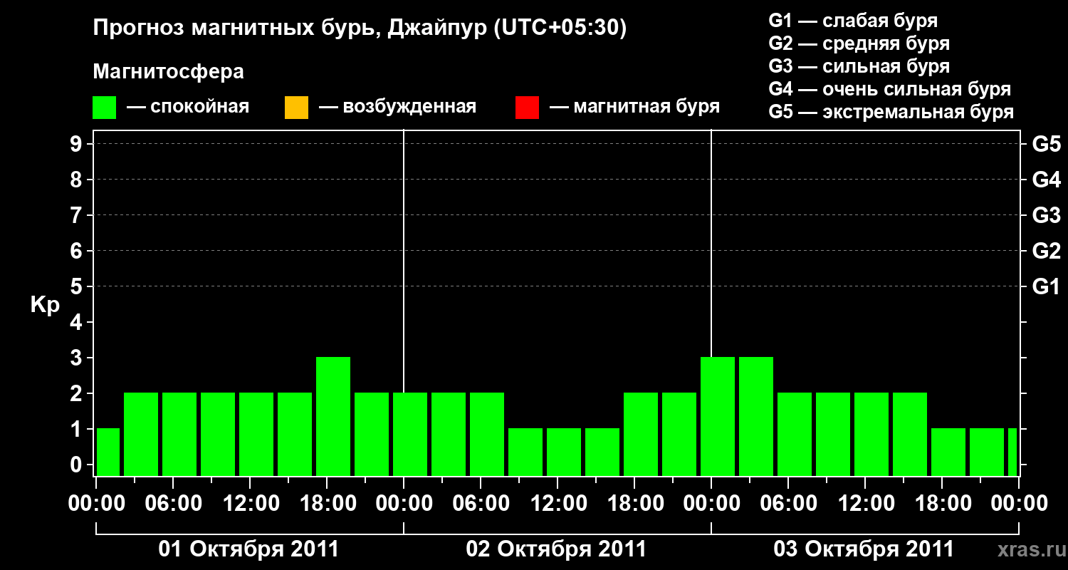 Прогноз магнитных бурь в Джайпуре — 1 октября 2011 года