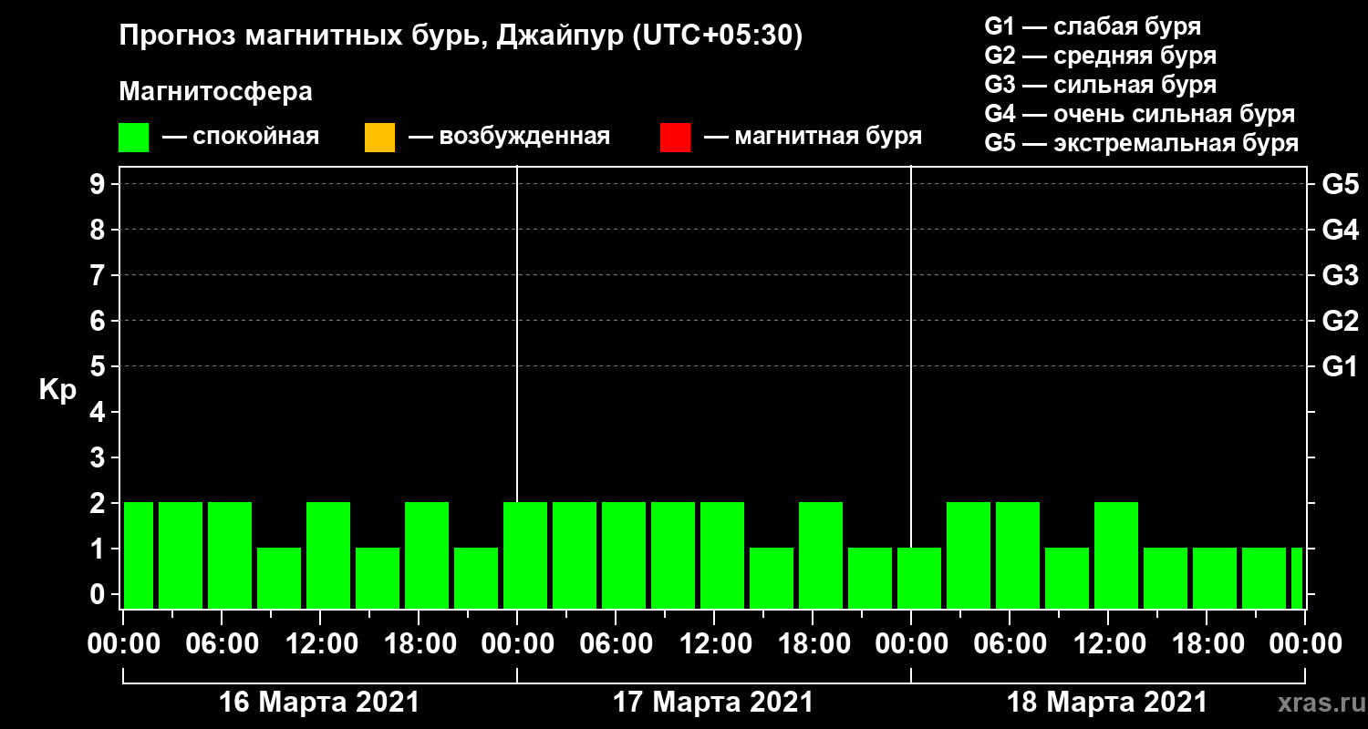 Прогноз магнитных бурь в Джайпуре — 16 марта 2021 года
