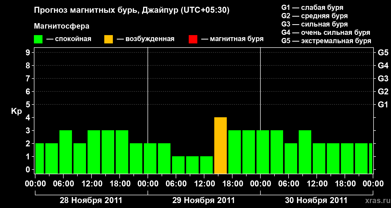 Прогноз магнитных бурь в Джайпуре — 28 ноября 2011 года