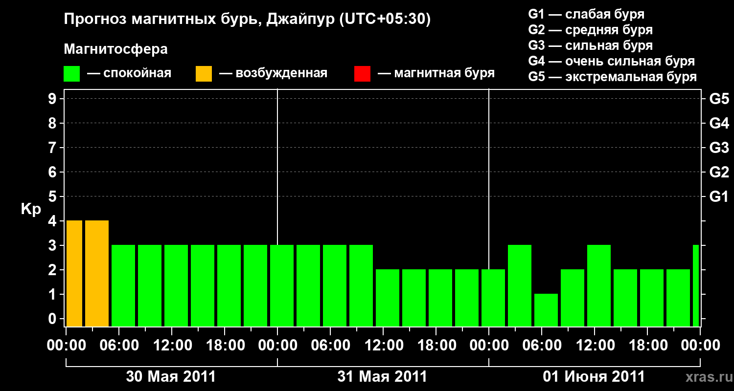 Прогноз магнитных бурь в Джайпуре — 30 мая 2011 года