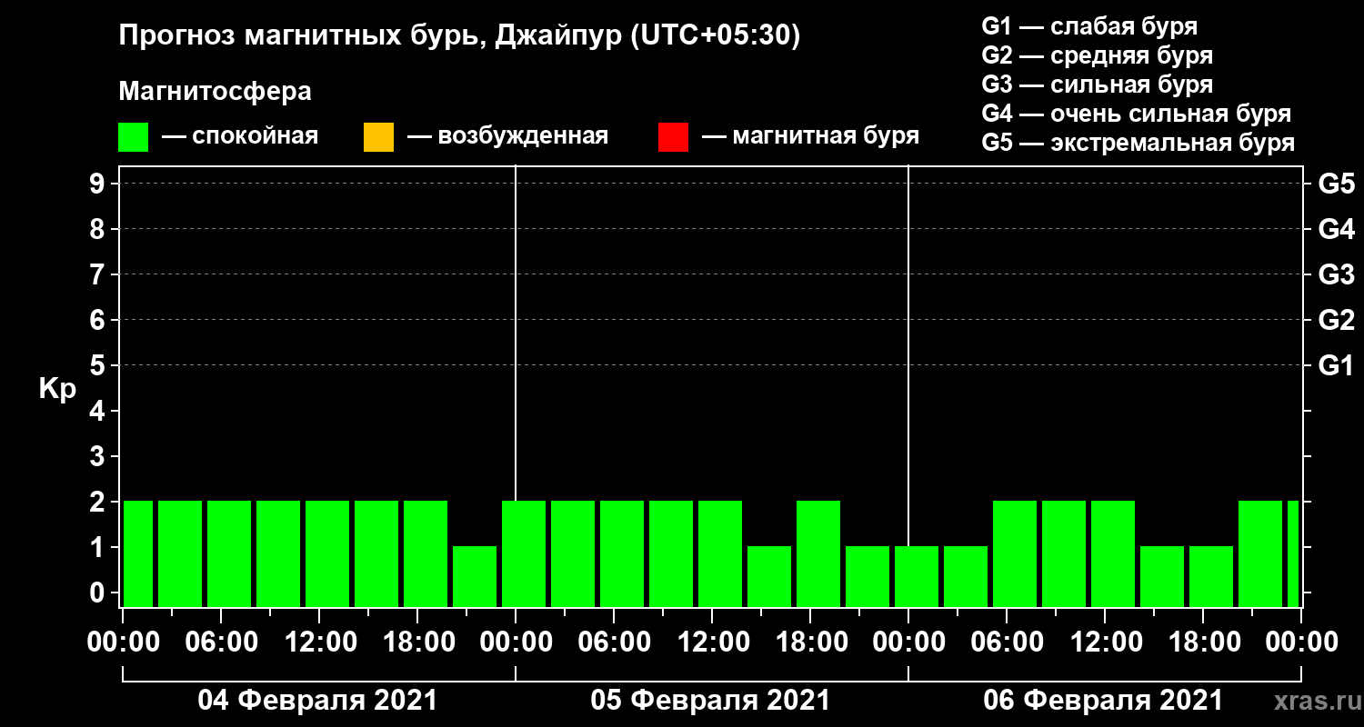 Прогноз магнитных бурь в Джайпуре — 4 февраля 2021 года