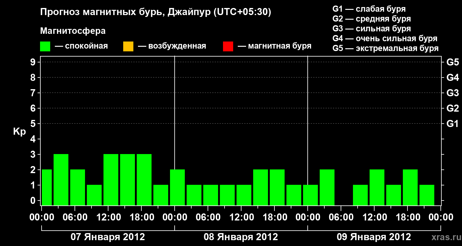 Прогноз магнитных бурь в Джайпуре — 7 января 2012 года
