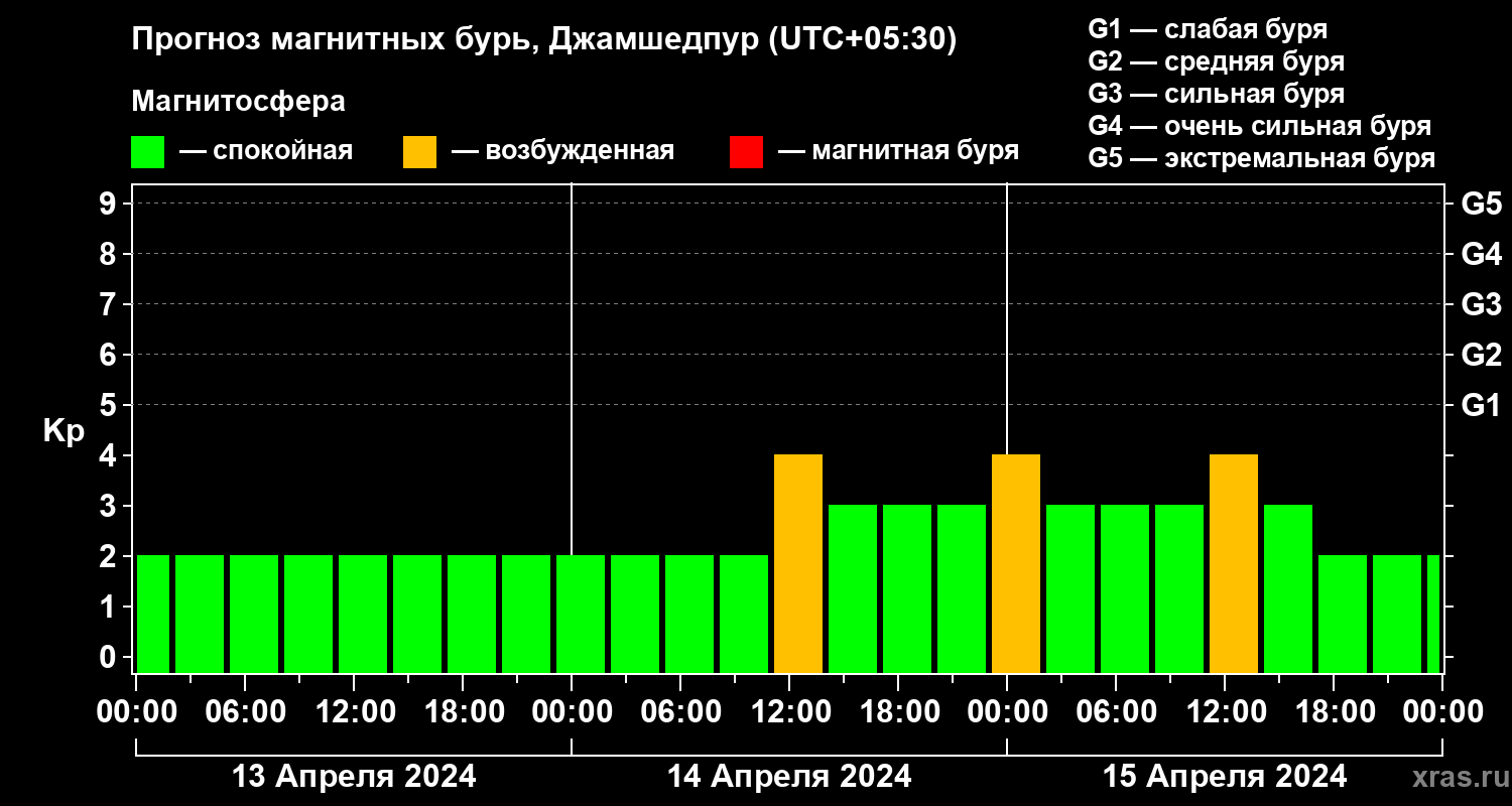 Прогноз магнитных бурь в Джамшедпуре — 13 апреля 2024 года