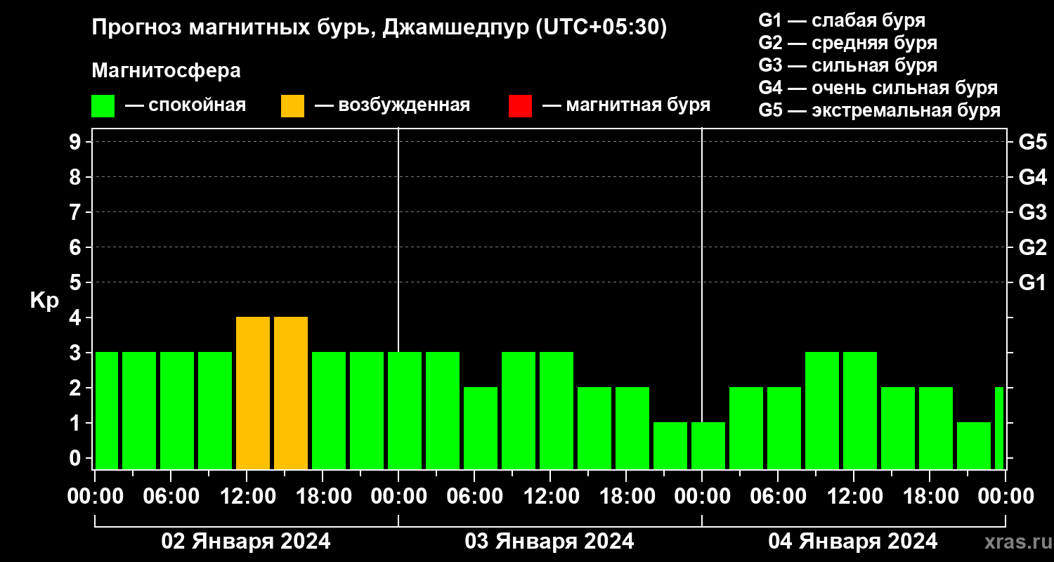 Прогноз магнитных бурь в Джамшедпуре — 2 января 2024 года