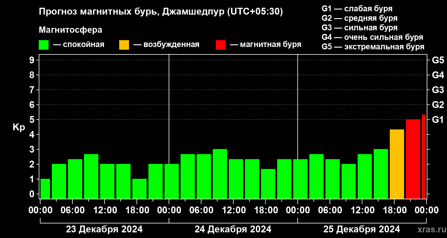 Прогноз магнитных бурь в Джамшедпуре — 23 декабря 2024 года