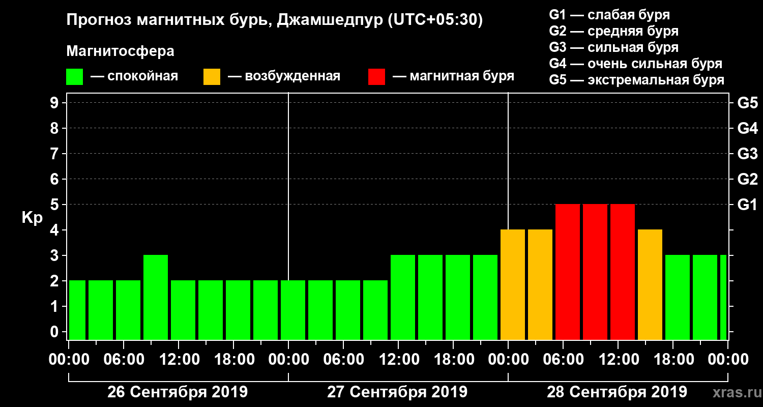 Прогноз магнитных бурь в Джамшедпуре — 26 сентября 2019 года