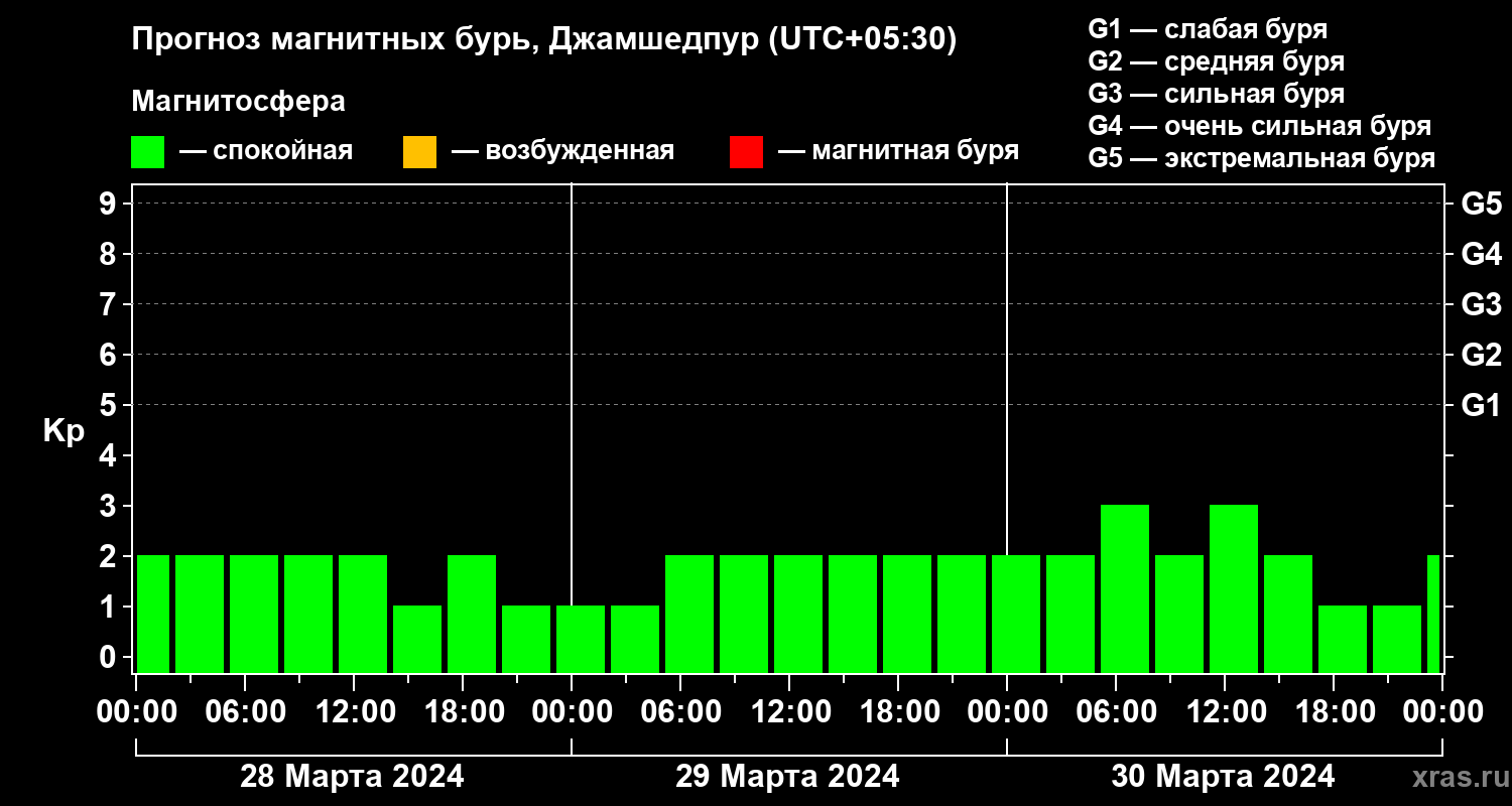 Прогноз магнитных бурь в Джамшедпуре — 28 марта 2024 года