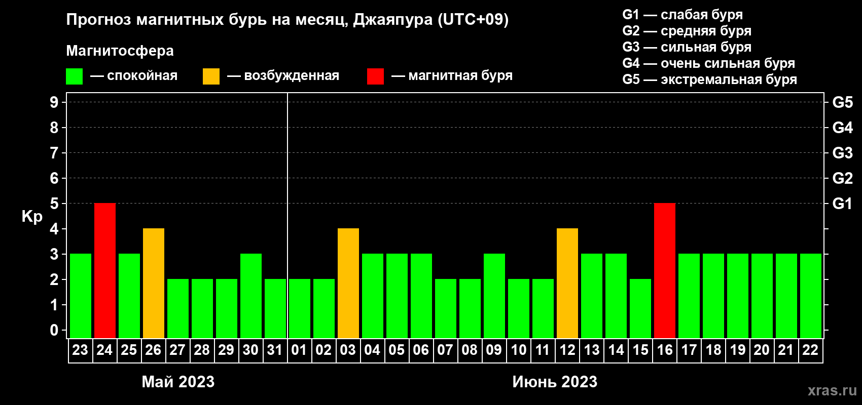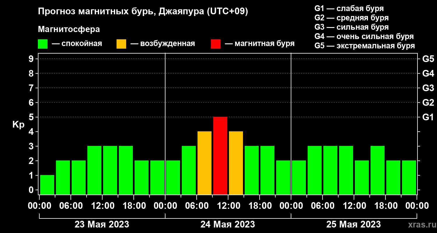 Прогноз магнитных бурь в Джаяпуре — 23 мая 2023 года