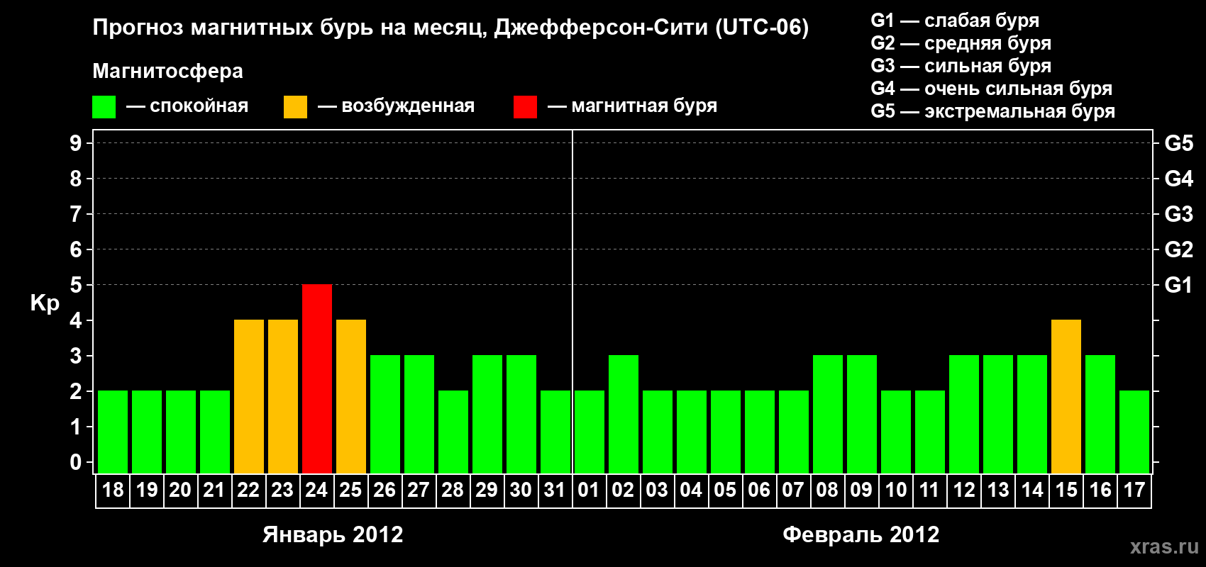 Прогноз магнитных бурь Джефферсон-Сити — 18 января 2012 года