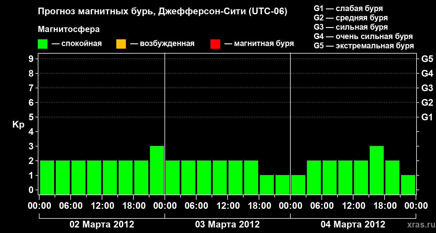 Прогноз магнитных бурь Джефферсон-Сити — 2 марта 2012 года