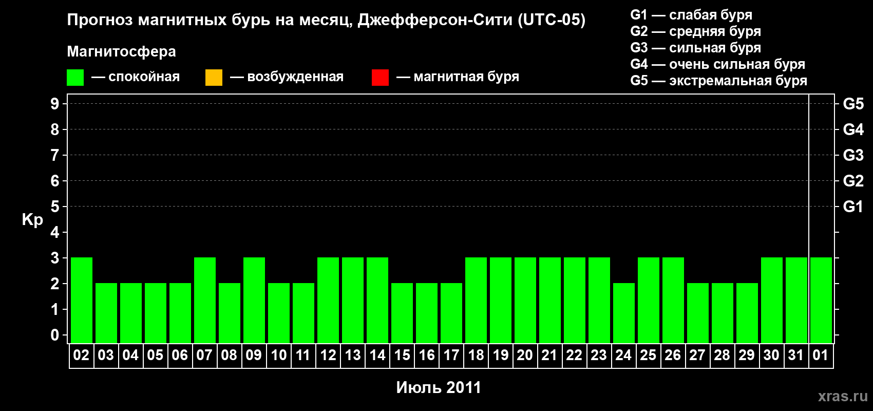 Прогноз магнитных бурь Джефферсон-Сити — 2 июля 2011 года