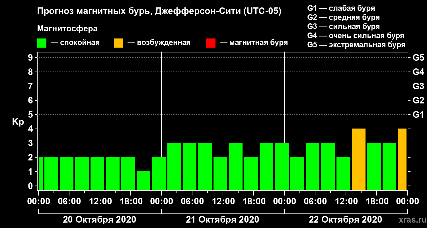 Прогноз магнитных бурь Джефферсон-Сити на 20 октября 2020 года