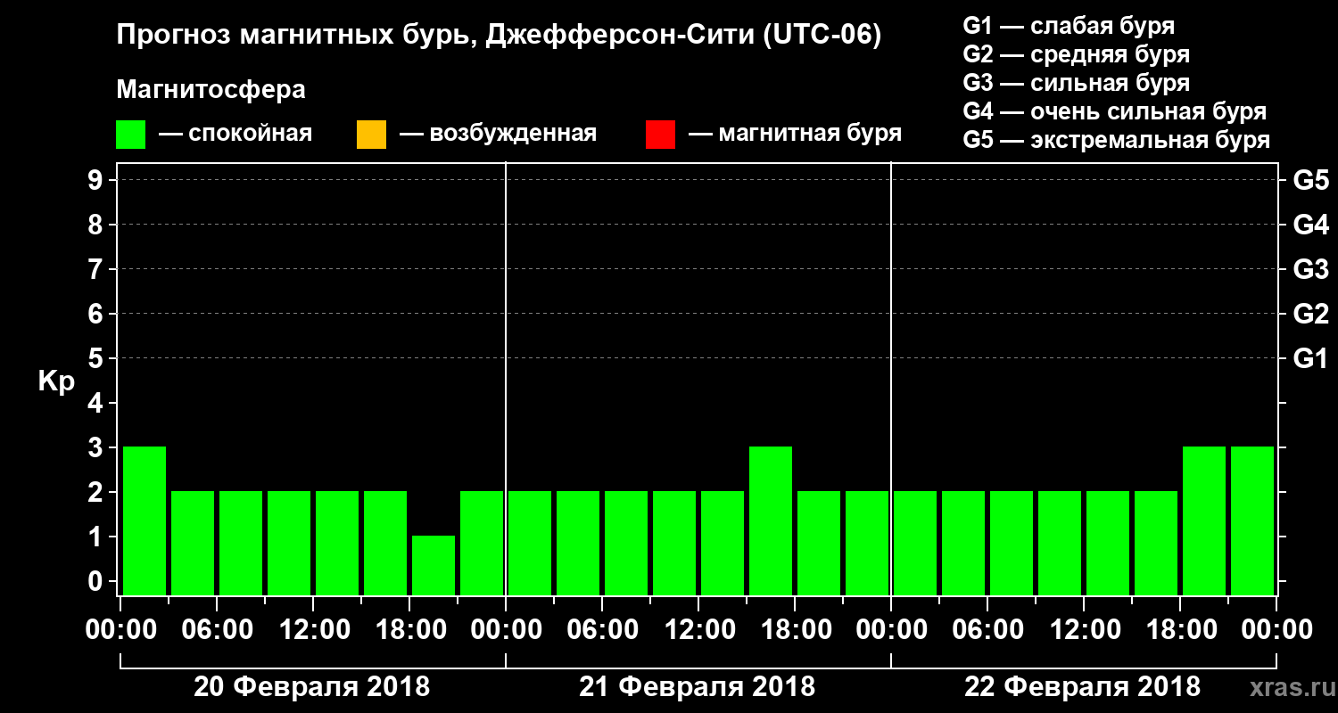 Прогноз магнитных бурь Джефферсон-Сити на 20 февраля 2018 года