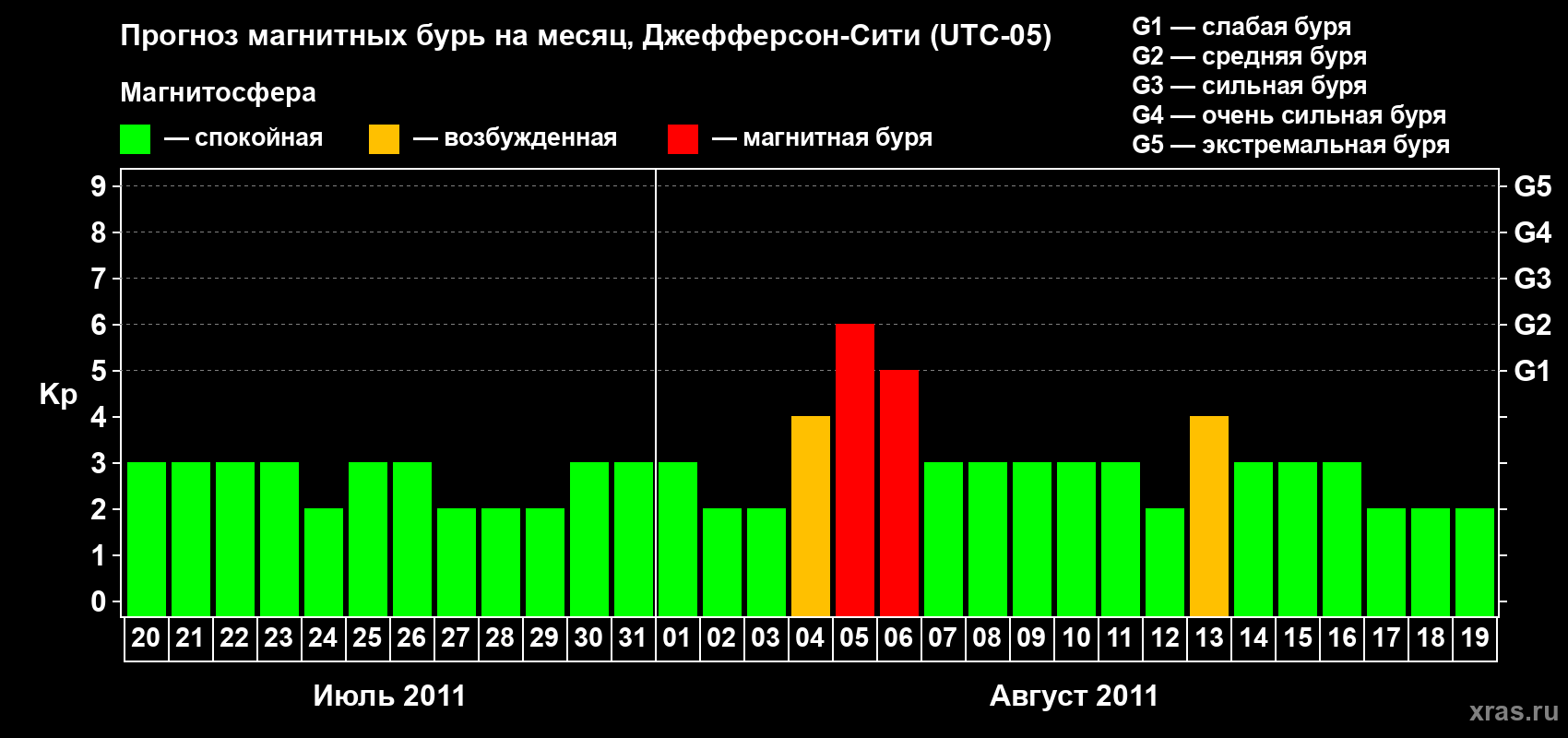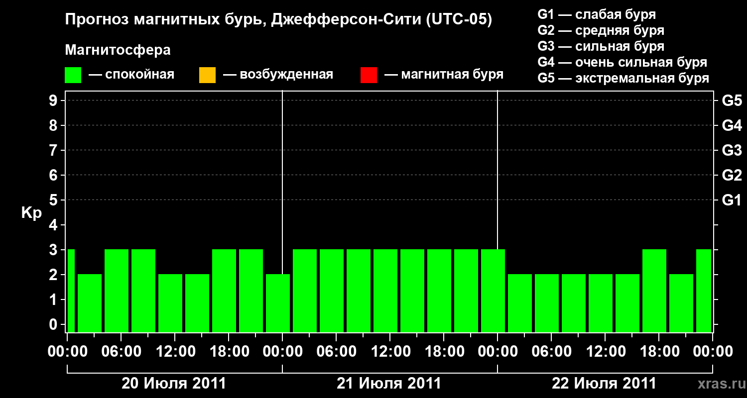 Прогноз магнитных бурь Джефферсон-Сити — 20 июля 2011 года