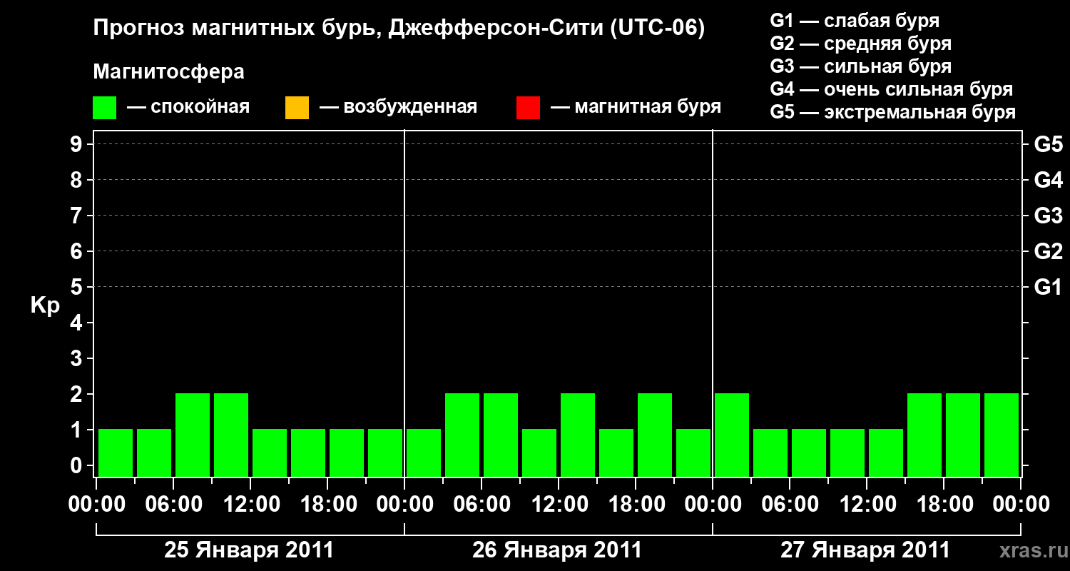 Прогноз магнитных бурь Джефферсон-Сити на 25 января 2011 года