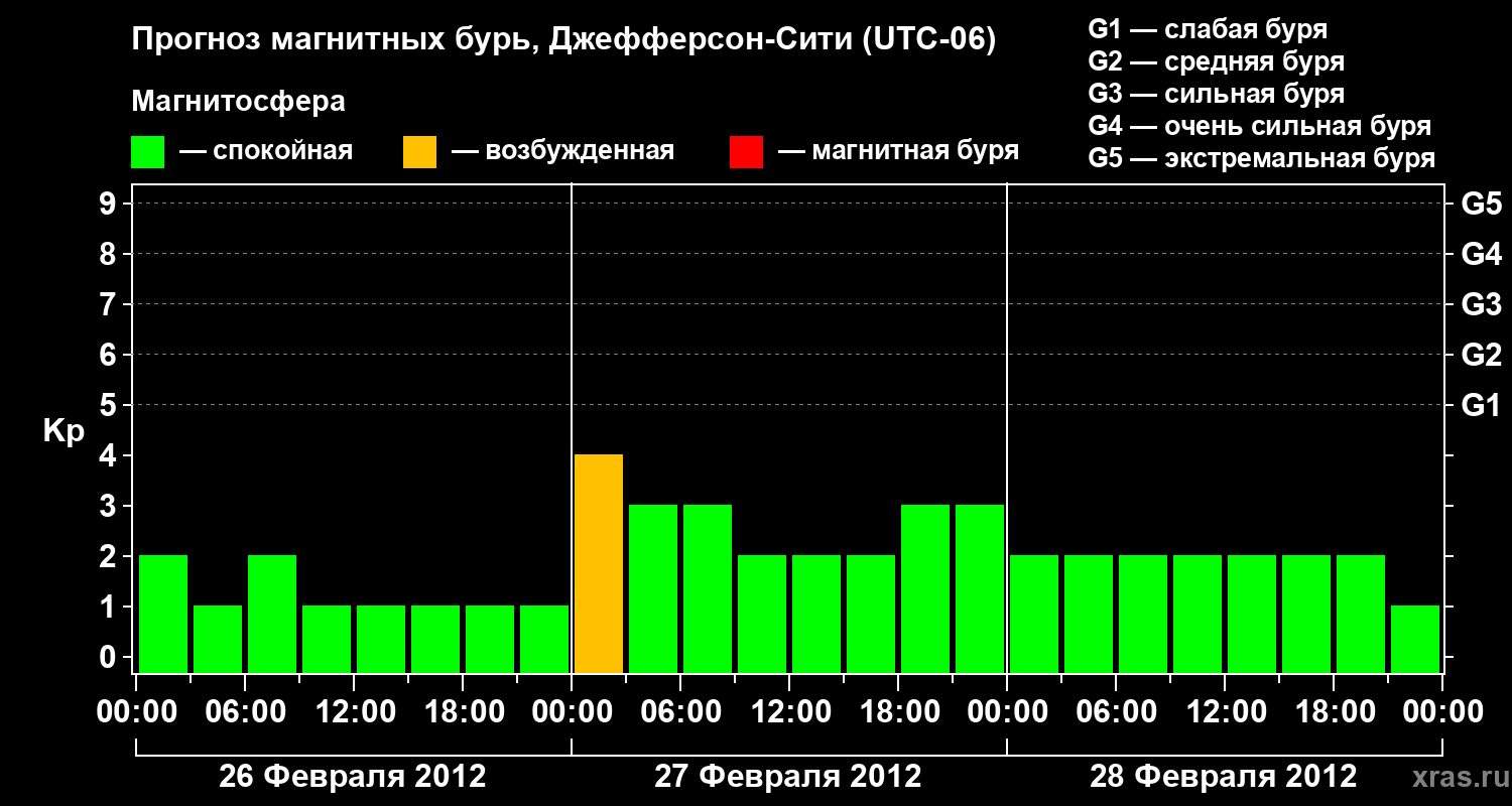 Прогноз магнитных бурь Джефферсон-Сити на 26 февраля 2012 года