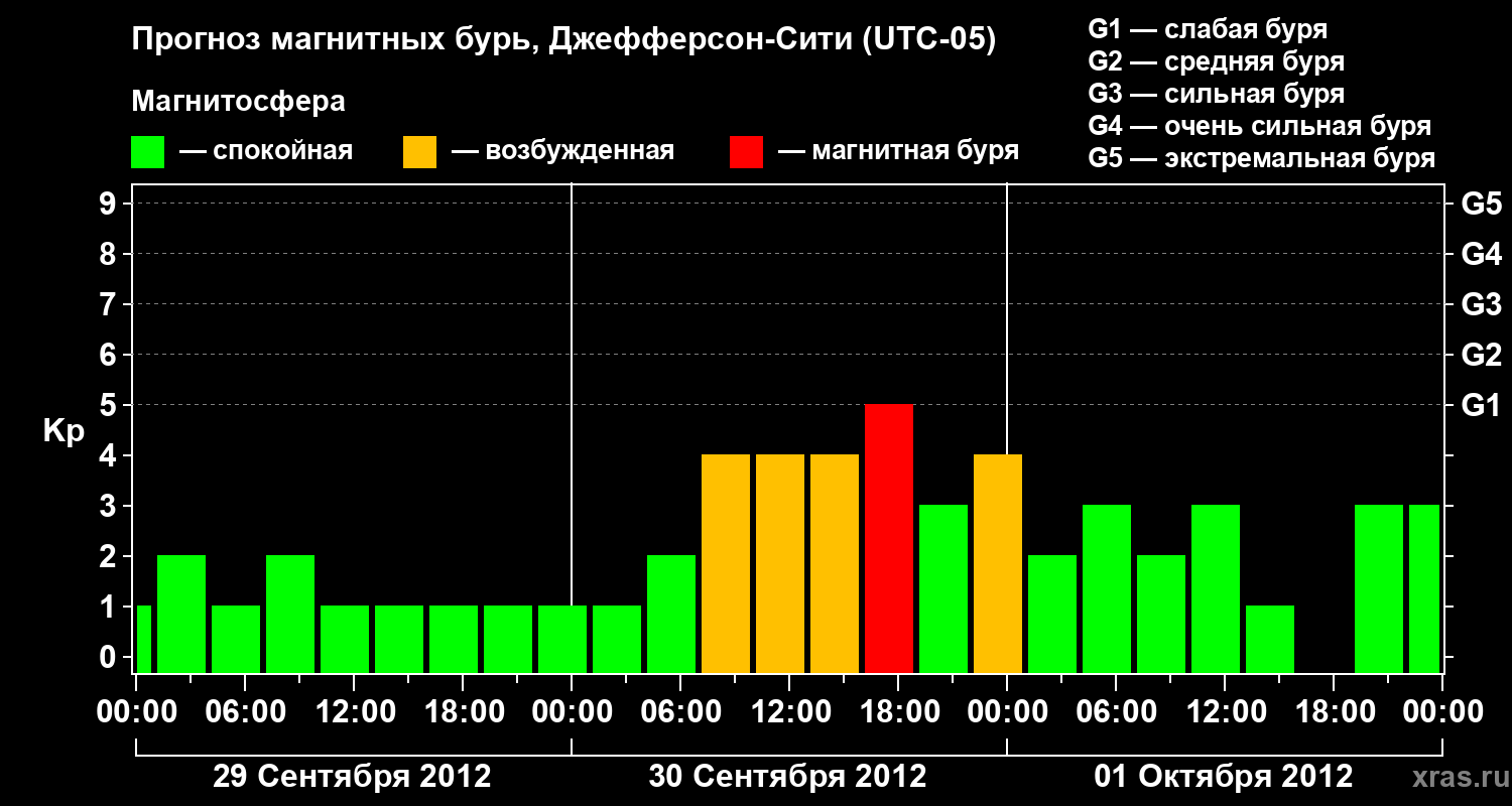 Прогноз магнитных бурь Джефферсон-Сити — 29 сентября 2012 года