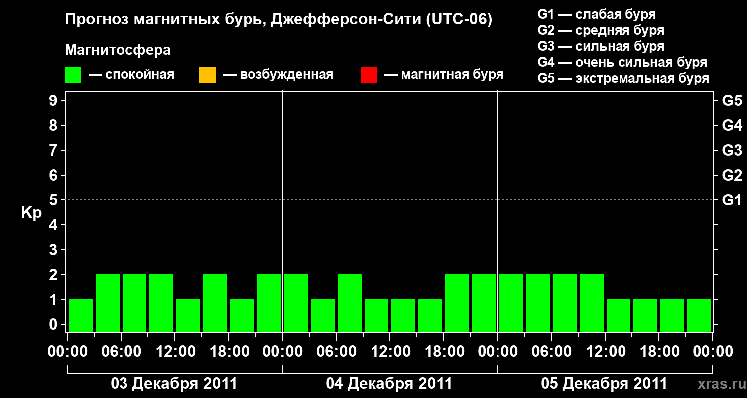 Прогноз магнитных бурь Джефферсон-Сити на 3 декабря 2011 года
