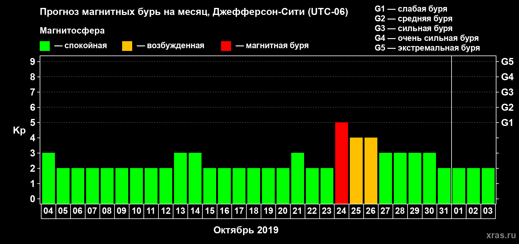 Прогноз магнитных бурь Джефферсон-Сити на 4 октября 2019 года