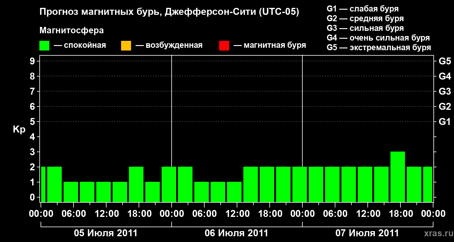 Прогноз магнитных бурь Джефферсон-Сити — 5 июля 2011 года