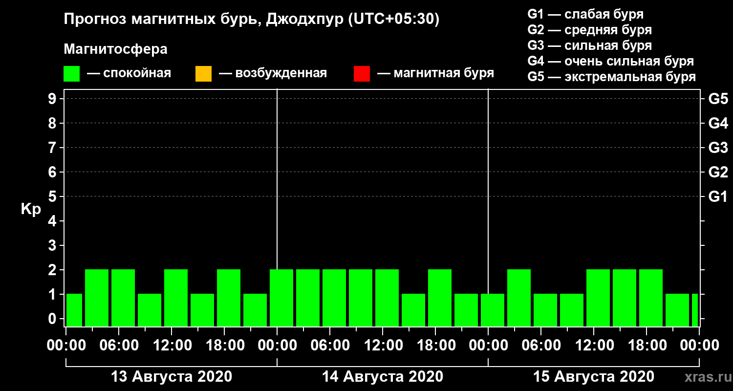 Прогноз магнитных бурь в Джодхпуре — 13 августа 2020 года