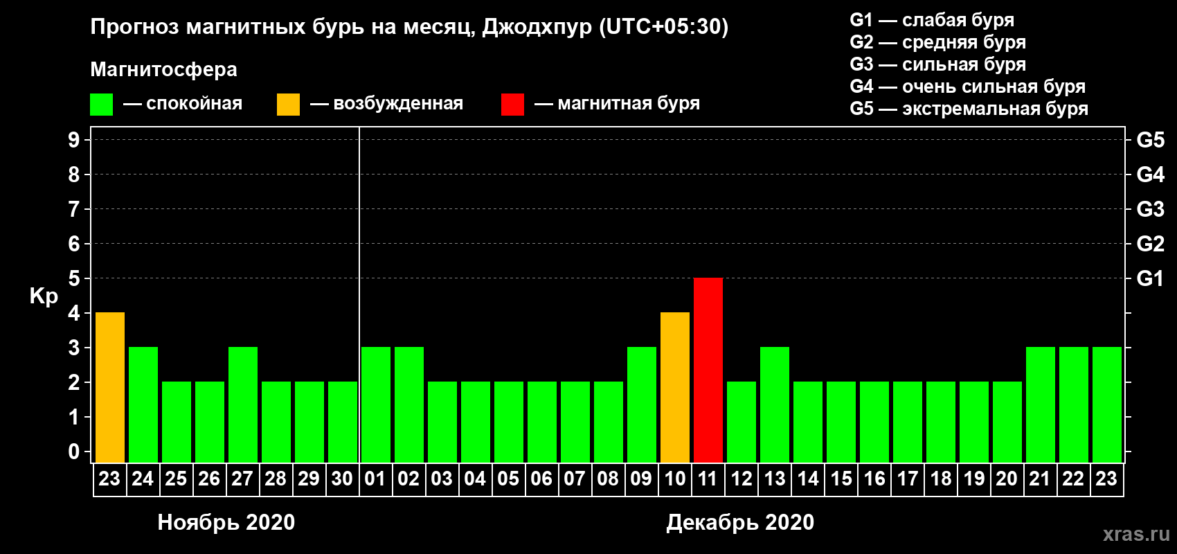 Прогноз магнитных бурь в Джодхпуре — 23 ноября 2020 года