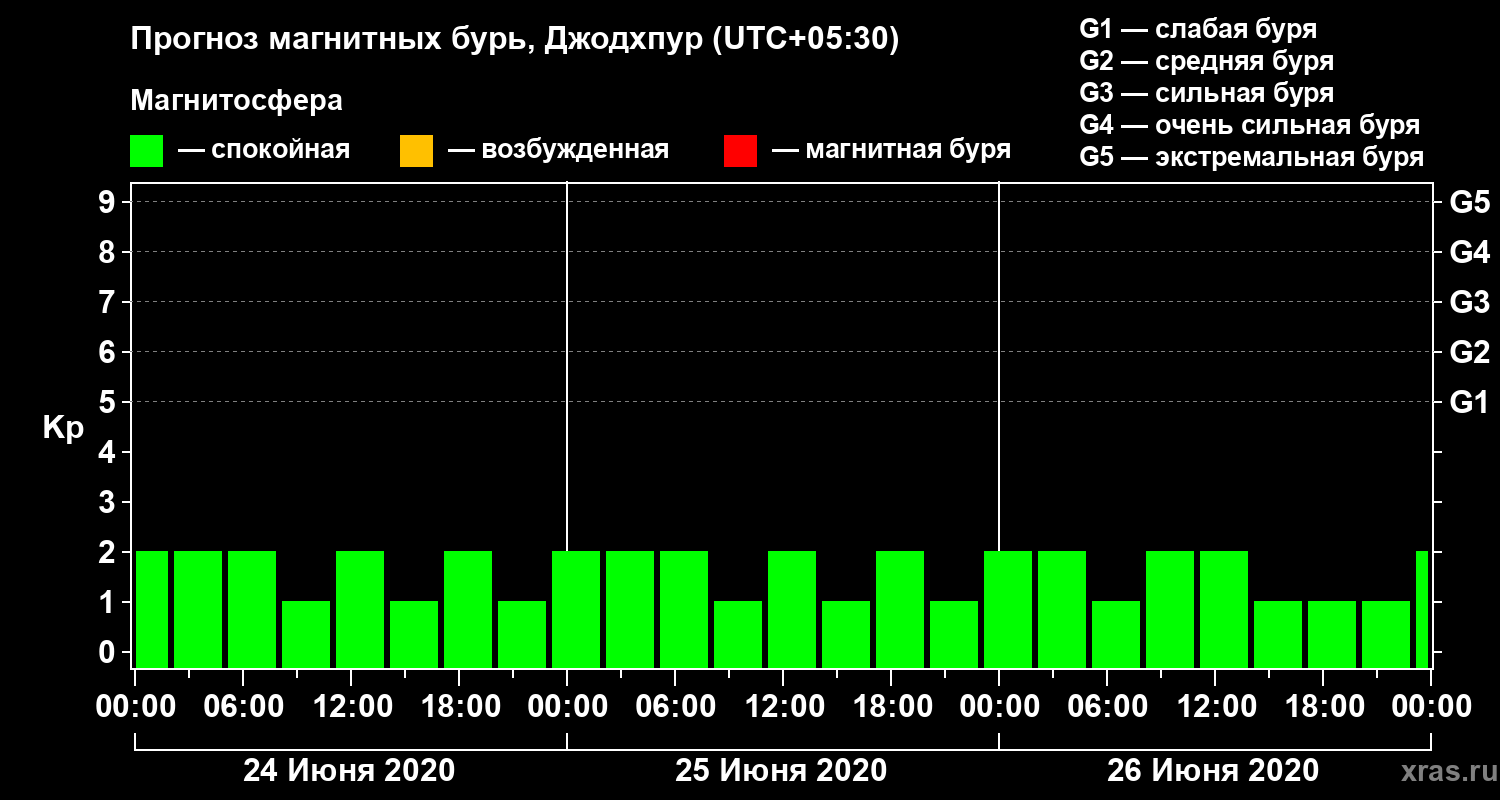 Прогноз магнитных бурь в Джодхпуре — 24 июня 2020 года