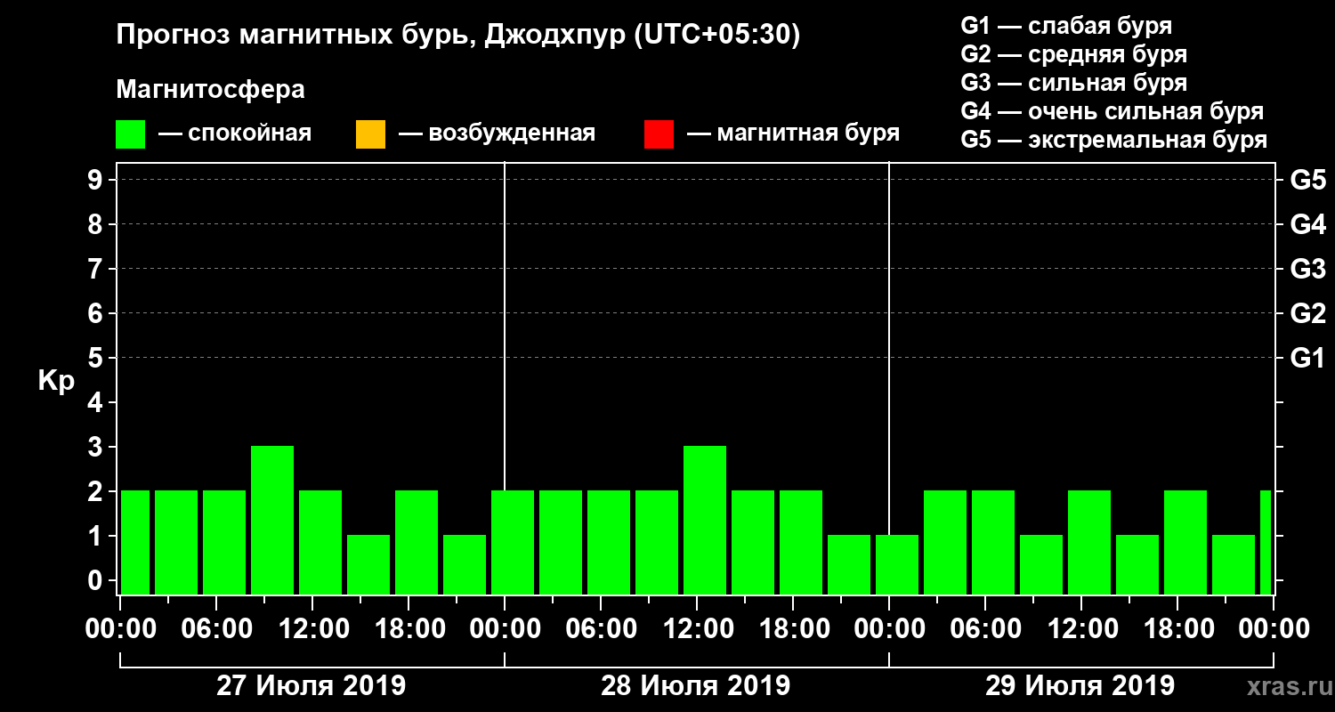 Прогноз магнитных бурь в Джодхпуре — 27 июля 2019 года
