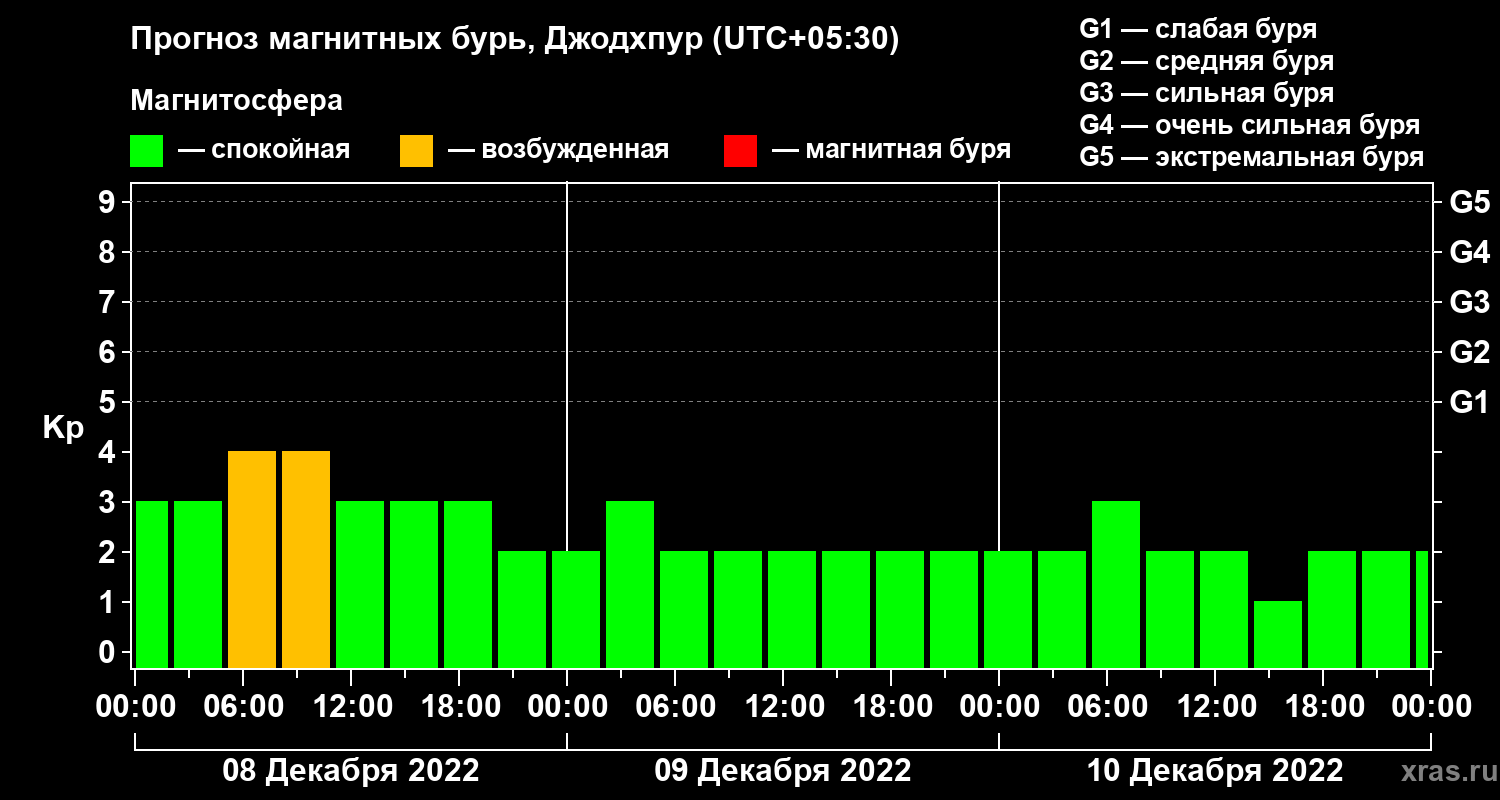 Прогноз магнитных бурь в Джодхпуре — 8 декабря 2022 года