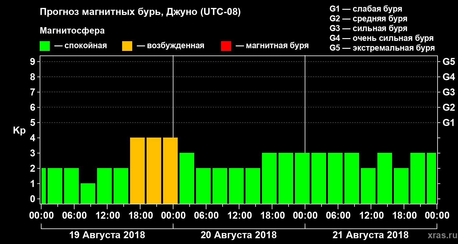Прогноз магнитных бурь Джуно на 19 августа 2018 года