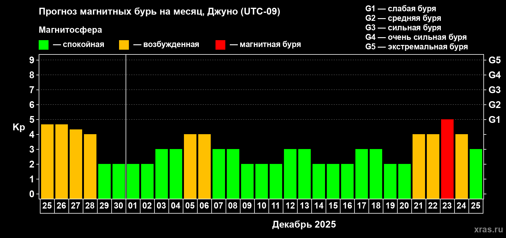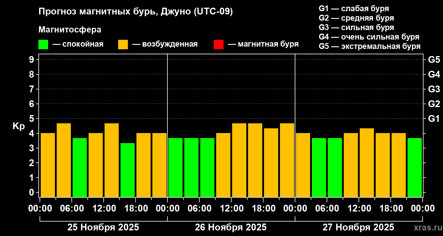 Прогноз магнитных бурь Джуно на 25 ноября 2025 года