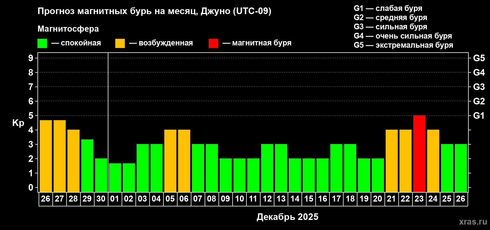 Прогноз магнитных бурь Джуно на 26 ноября 2025 года