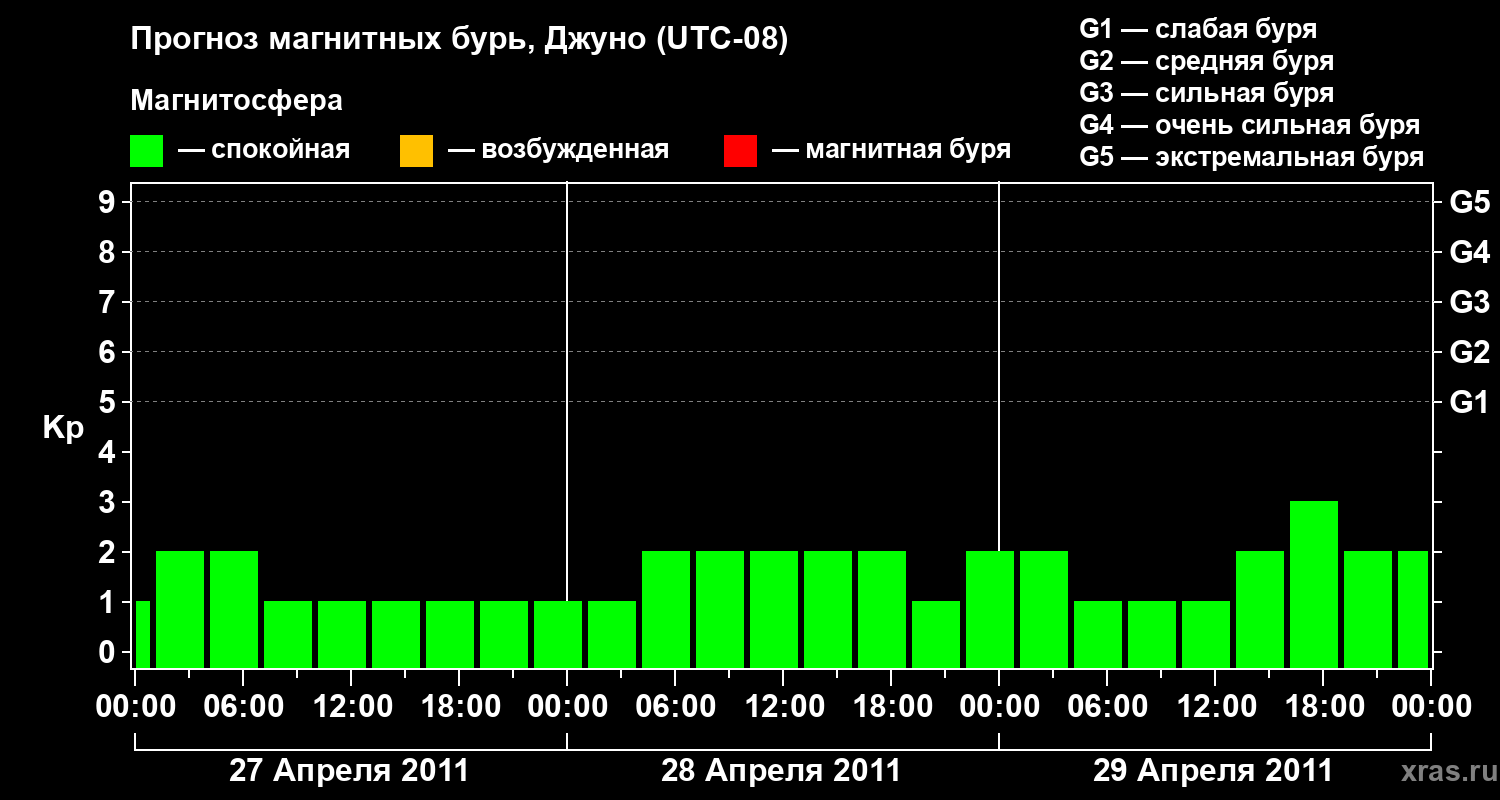 Прогноз магнитных бурь Джуно на 27 апреля 2011 года