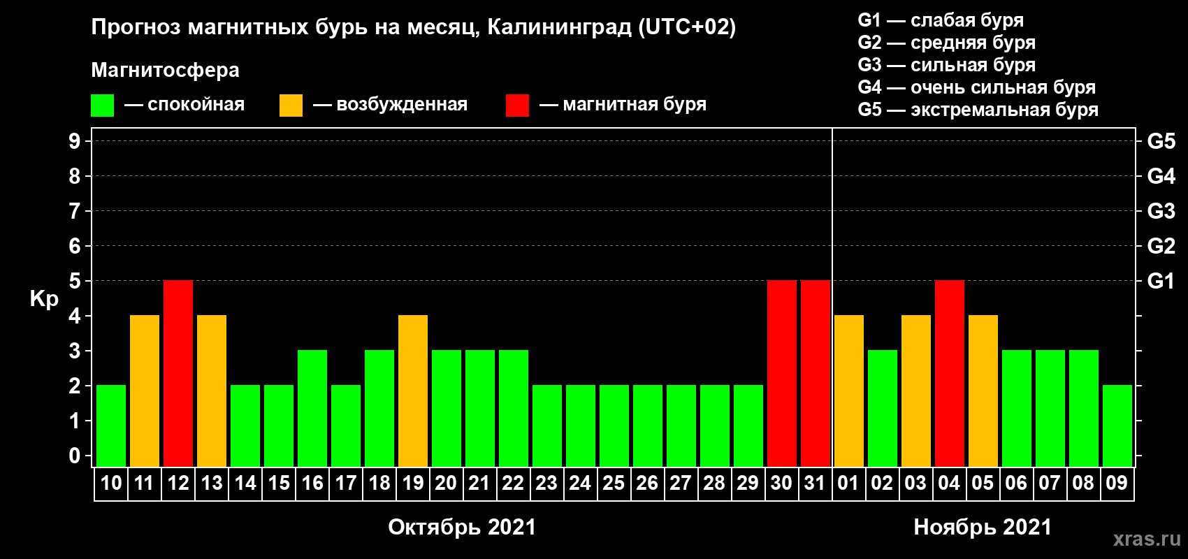 Прогноз магнитных бурь в Калининграде — 10 октября 2021 года