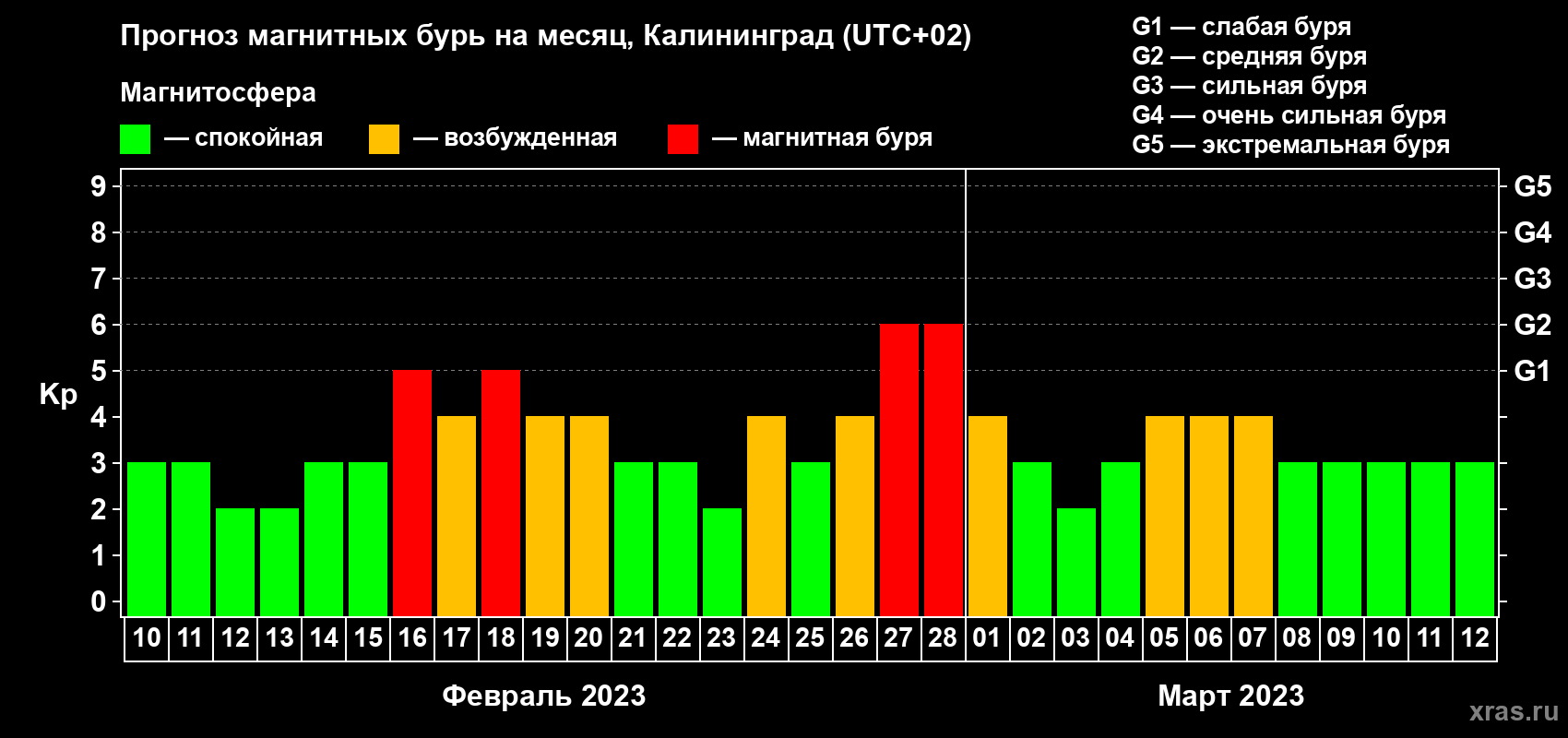 Прогноз магнитных бурь в Калининграде — 10 февраля 2023 года