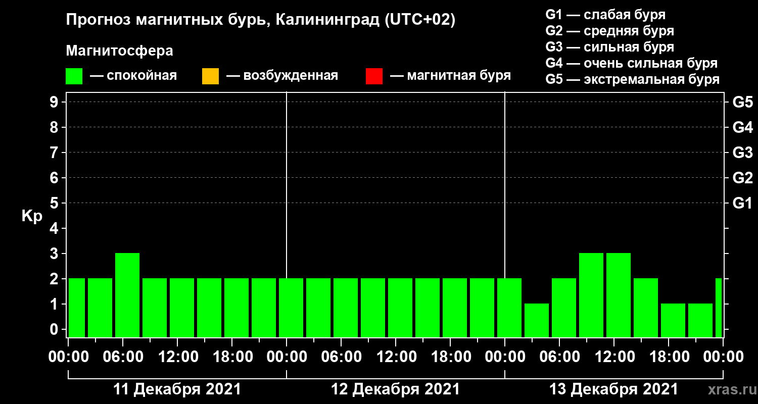 Прогноз магнитных бурь в Калининграде — 11 декабря 2021 года
