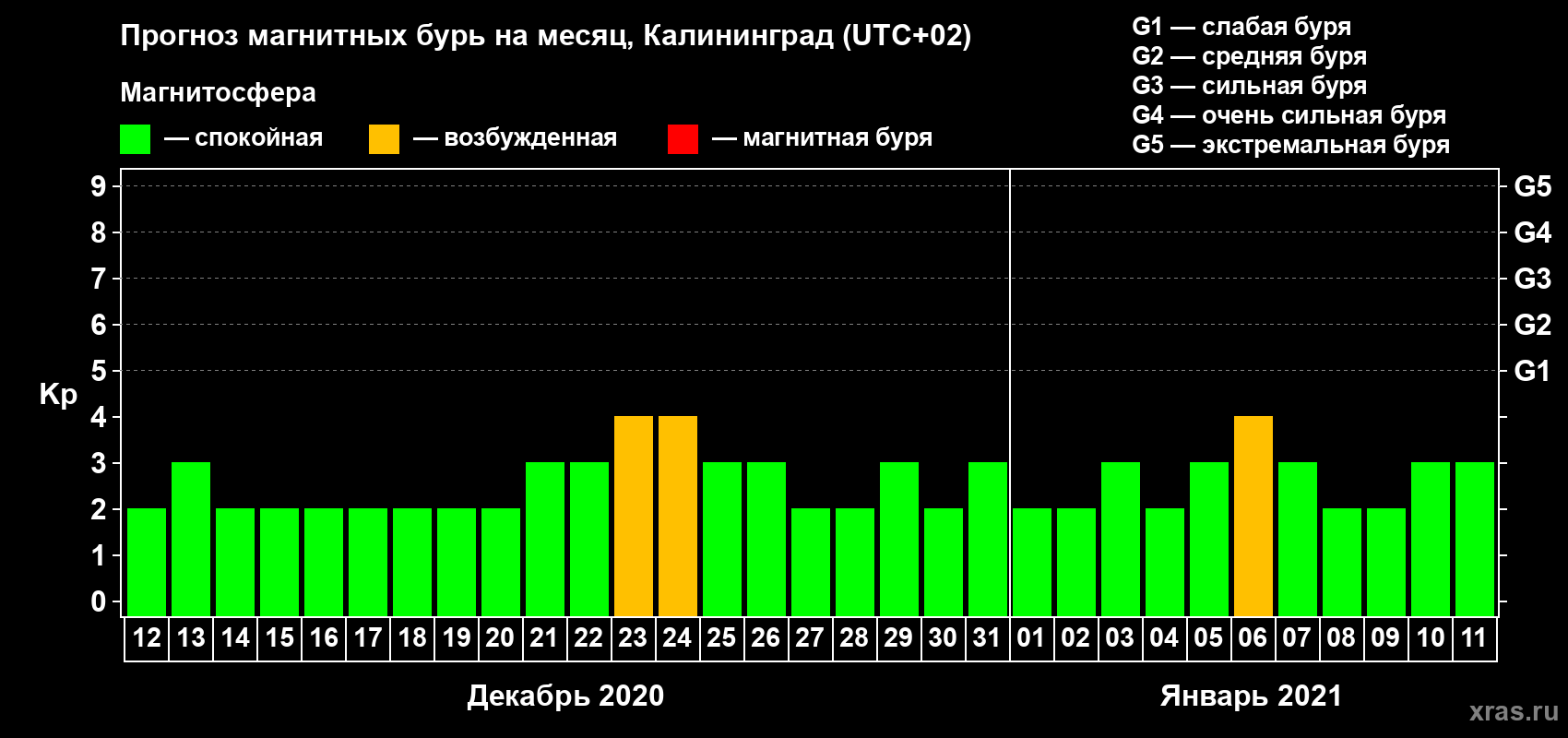 Прогноз магнитных бурь в Калининграде — 12 декабря 2020 года