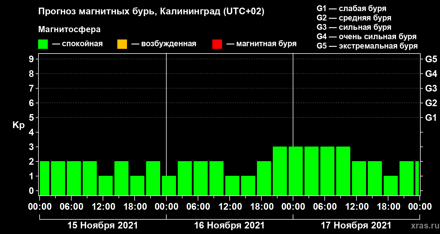 Прогноз магнитных бурь в Калининграде — 15 ноября 2021 года