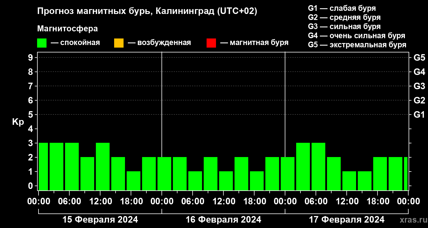 Прогноз магнитных бурь в Калининграде — 15 февраля 2024 года